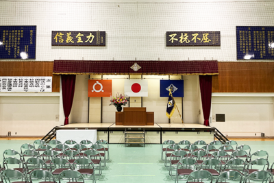 式典が行われた第一体育館では、昨年11月末から年末にかけて照明を