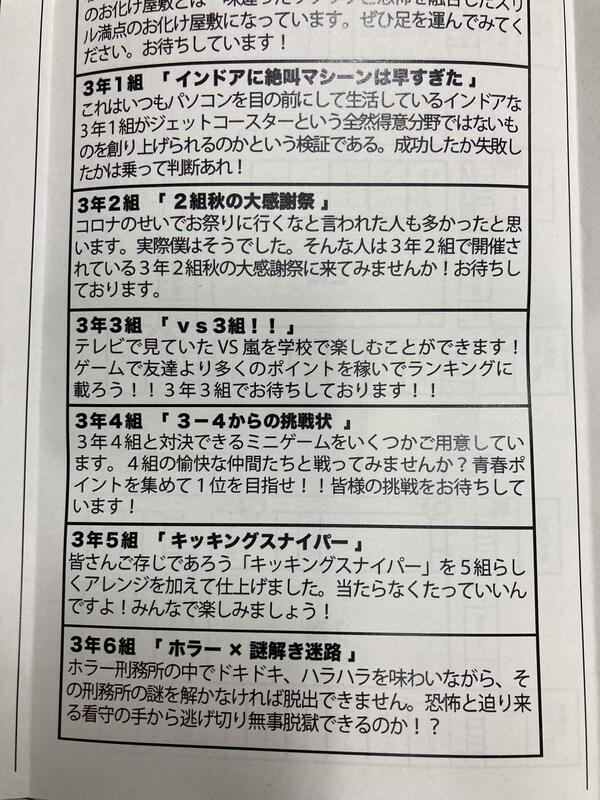 3年生のクラス発表,クラス企画ともに内容の完成度の高さを見せてくれました。進路活動と並行しての準備本番片付けでしたが、メリハリをつけてどちらもおろそかにせず取り組みました。